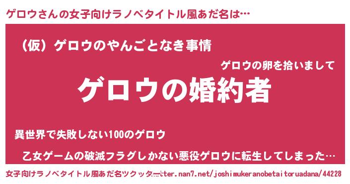 | ファンタジー風あだ名 | 『エターナルゲロウー』『ゲロフェル』 |