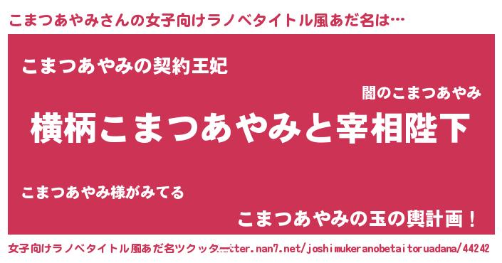 | 男性向けラノベタイトル風あだ名 | 『こまつあやみに滅ぼされるだけの簡単なお仕事です』 |