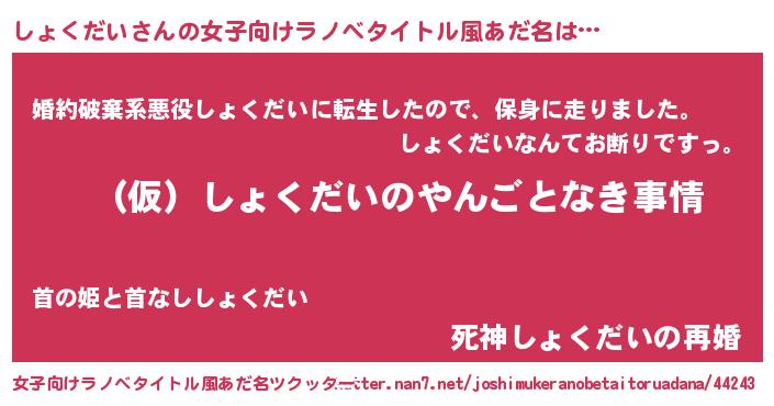 | 胡散臭い通販商品みたいなあだ名 | 『必ず成功する霊験あらたかなお札…その名も「しょくだい」』 |