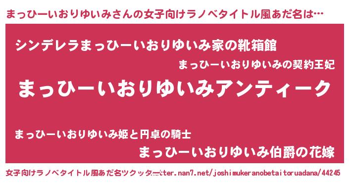 | 意味不明あだ名 | 『自称まっひーいおりゆいみ』 |