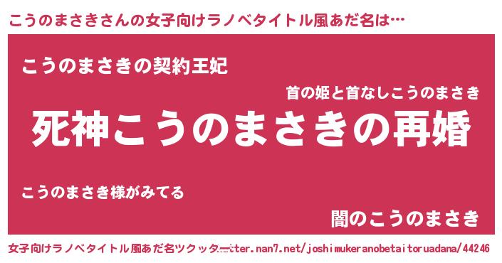 | ヘコむあだ名 | 『こうのまさき(遠い目)』『こうぷりん』 |
