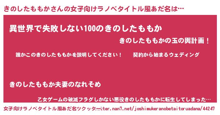 | 男性向けラノベタイトル風あだ名 | 『キノシタモモカアートオンライン』 |