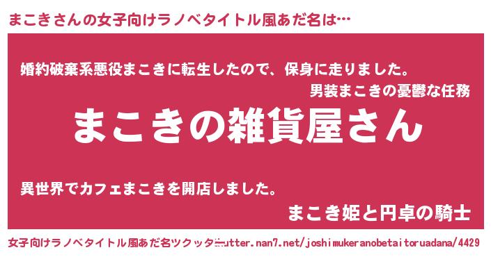 | 男性向けラノベタイトル風あだ名 | 『やはりまこきの青春ラブコメはまちがっている 』 |