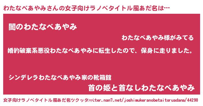 | 肩書あだ名 | 『わたなべあやみ少将』 |