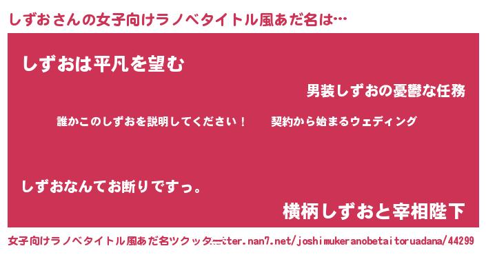 | 男性向けラノベタイトル風あだ名 | 『シズオアートオンライン』 |