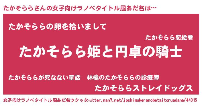 | 胡散臭い通販商品みたいなあだ名 | 『モテモテ間違いなし水晶球…その名も「たかそらら」』 |