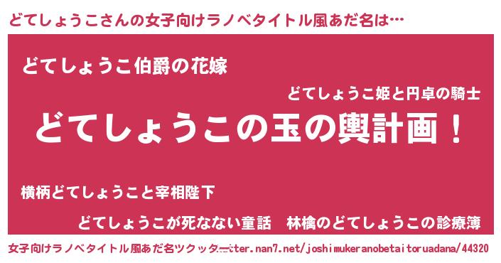 | 男性向けラノベタイトル風あだ名 | 『どてしょうこ~年齢イコール彼女いない歴の魔法使い~』 |