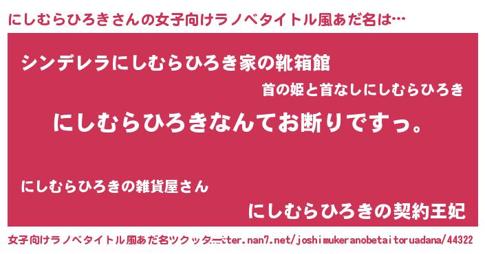 | 男性向けラノベタイトル風あだ名 | 『魔法科高校のにしむらひろき』 |