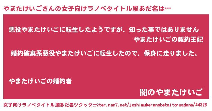 | ヘコむあだ名 | 『やまたけいご(笑)』『酢こんぶ』 |