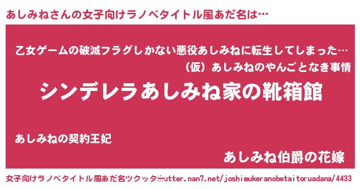 | 意味不明あだ名 | 『住所不定無職あしみね(6歳)』 |