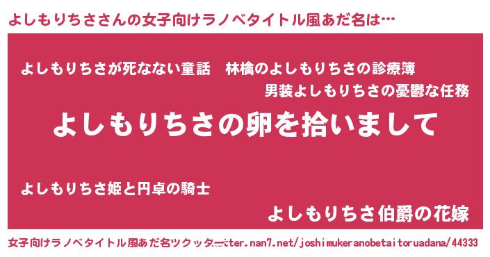 | 胡散臭い通販商品みたいなあだ名 | 『伝統あるネックレス…その名も「よしもりちさ」』 |