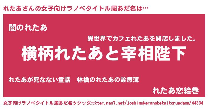 | 男性向けラノベタイトル風あだ名 | 『れたあに滅ぼされるだけの簡単なお仕事です』 |