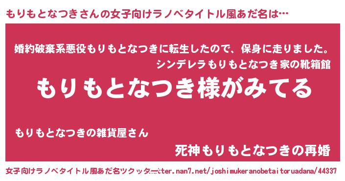 | 意味不明あだ名 | 『とにかく怪しいもりもとなつき』 |