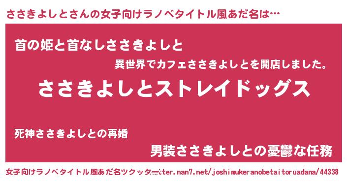 | 男性向けラノベタイトル風あだ名 | 『Re:ささきよしとから始める異世界生活』 |
