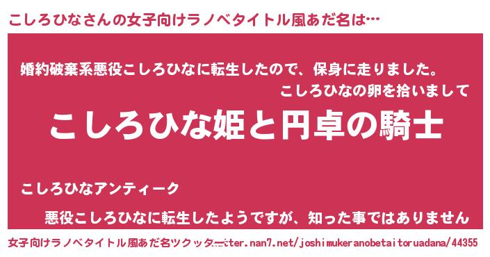 | 意味不明あだ名 | 『ペロリンこしろひな』『自称こしろひな』 |