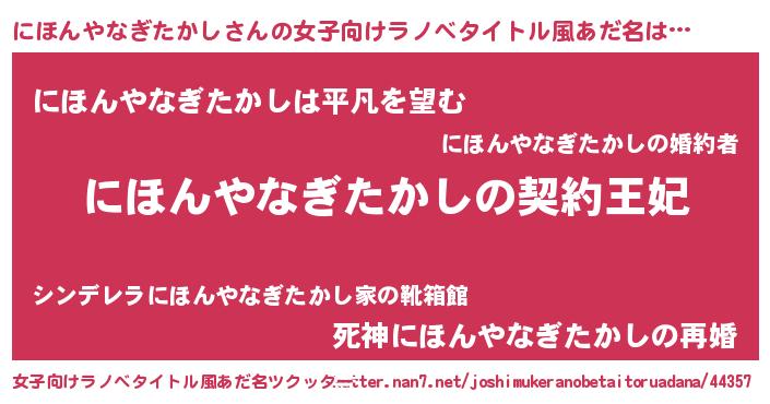 | 胡散臭い通販商品みたいなあだ名 | 『来世でも幸せになれる水素水…その名も「にほんやなぎたかし」』 |