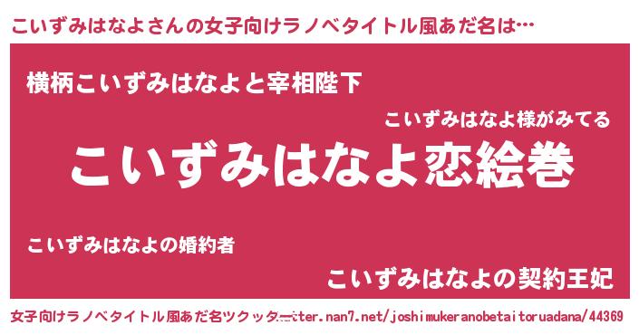 | 男性向けラノベタイトル風あだ名 | 『おまえをオタクにしてやるから、俺をこいずみはなよにしてくれ! 』 |
