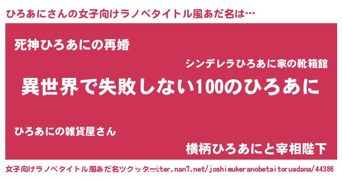 | ヒーロー風カッコイイあだ名 | 『ネオヒロアニ』『慈愛の使者ひろあに』 |