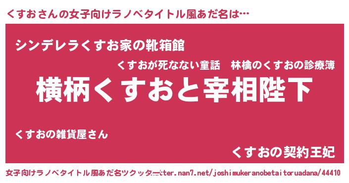 | 胡散臭い通販商品みたいなあだ名 | 『来世でも幸せになれる水素水…その名も「くすお」』 |