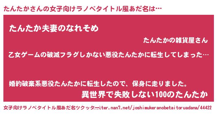 | 胡散臭い通販商品みたいなあだ名 | 『世界中を虜にした100年もののヴィンテージワイン…その名も「たんたか」』 |