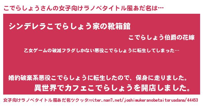 | 意味不明あだ名 | 『住所不定無職こでらしょう(41歳)』 |