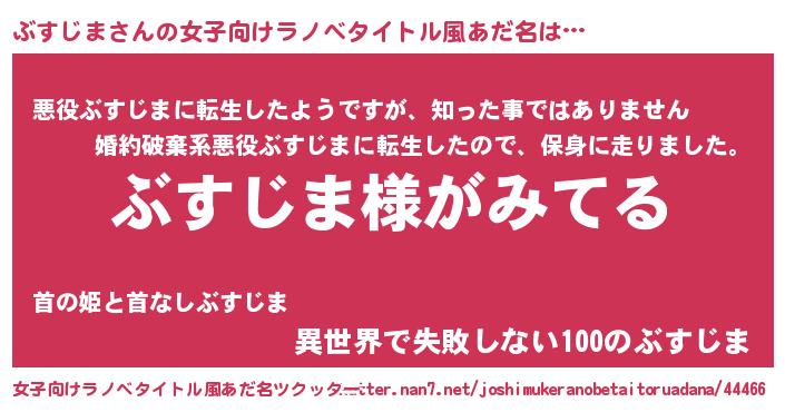 | 男性向けラノベタイトル風あだ名 | 『ぶすじまの嫁は女の子じゃないと思った?』 |