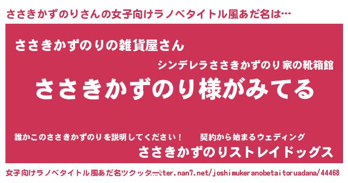 | 男性向けラノベタイトル風あだ名 | 『ささきかずのりの嫁は女の子じゃないと思った?』 |