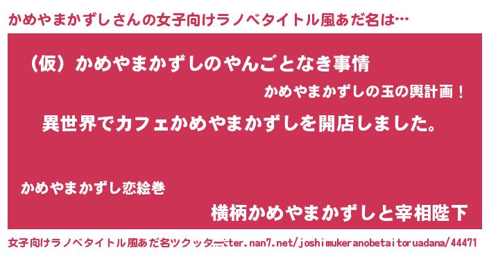 | 男性向けラノベタイトル風あだ名 | 『誰もが恐れるあのかめやまかずしが、ぼくの専属メイドになるようです。』 |