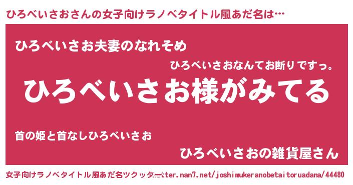 | 男性向けラノベタイトル風あだ名 | 『ひろべいさおの嫁は女の子じゃないと思った?』 |