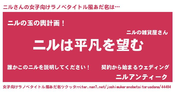 | 男性向けラノベタイトル風あだ名 | 『ダンジョンにニルを求めるのは間違っているだろうか』 |