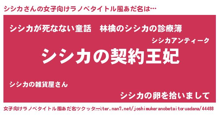 | 胡散臭い通販商品みたいなあだ名 | 『来世でも幸せになれる水素水…その名も「シシカ」』 |
