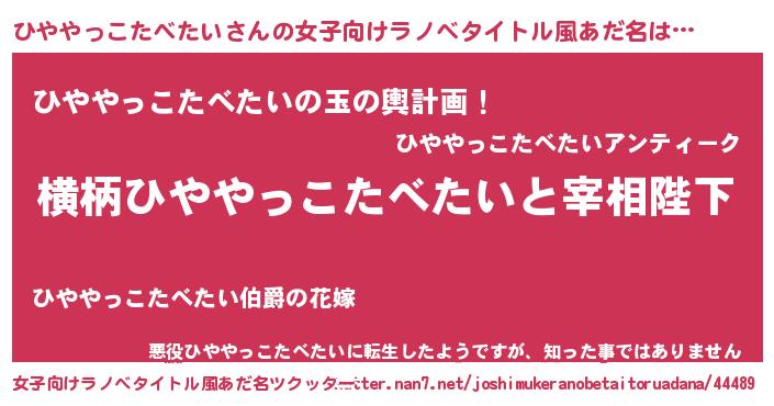 | 男性向けラノベタイトル風あだ名 | 『ひややっこたべたいに滅ぼされるだけの簡単なお仕事です』 |