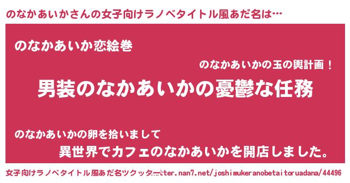 | ヘコむあだ名 | 『のなかあいか(苦笑)』『のなっちょ』 |