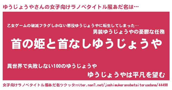 | ファンタジー風あだ名 | 『ヴァルユウーナ』『ファントムユウス』 |
