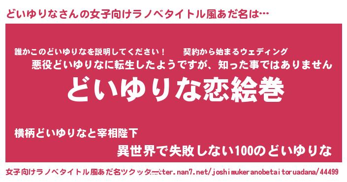 | 男性向けラノベタイトル風あだ名 | 『ノーゲーム・ノードイユリナ』 |