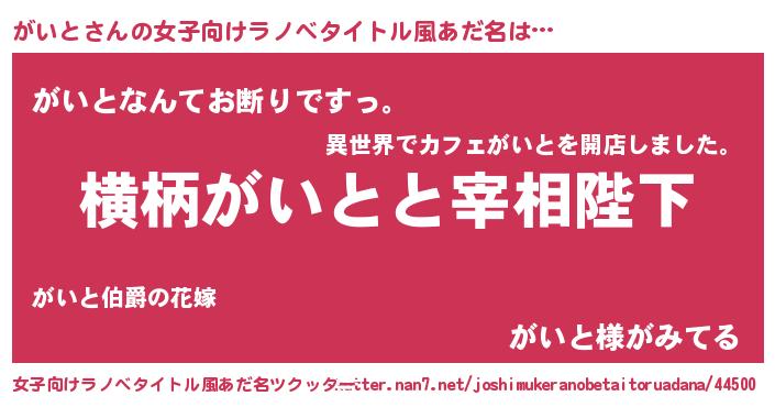 | ヘコむあだ名 | 『がい太郎』『がいと(笑)』 |
