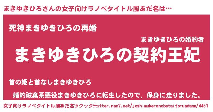 | 男性向けラノベタイトル風あだ名 | 『誰もが恐れるあのまきゆきひろが、ぼくの専属メイドになるようです。』 |