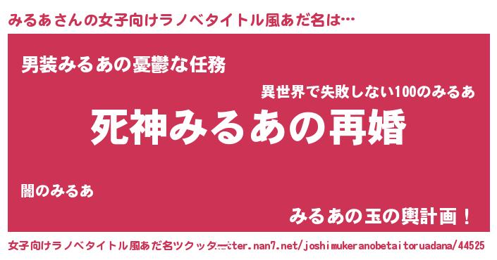| 意味不明あだ名 | 『眠気覚ましガムみるあ味』『自称みるあ』 |
