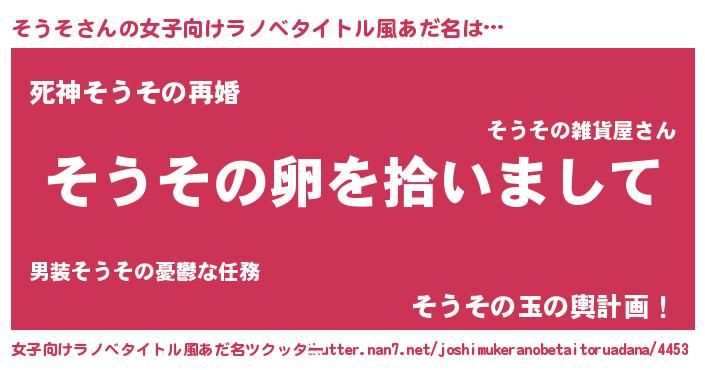 | 男性向けラノベタイトル風あだ名 | 『ダンジョンにそうそを求めるのは間違っているだろうか』 |