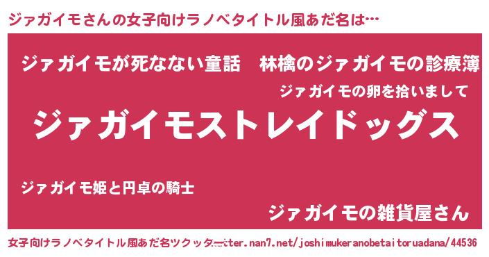| ヒーロー風カッコイイあだ名 | 『最強戦士ジァガイモ』『仮面ジァダー』 |