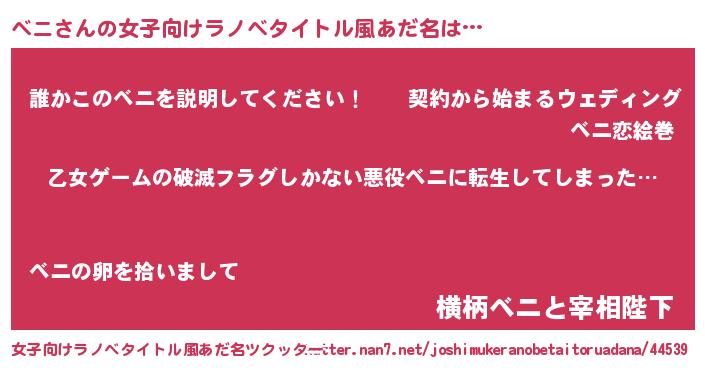 | ポケモン風あだ名 | 『ベーニイ』『ベニチュウ』『ヒベニ』 |