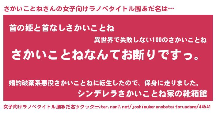 | 意味不明あだ名 | 『自称さかいことね』 |