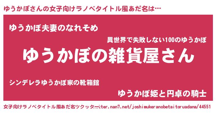 | 意味不明あだ名 | 『ゆうかぼフォーエバー』『自称ゆうかぼ』 |