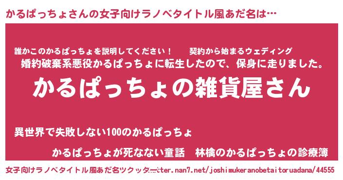 | 男性向けラノベタイトル風あだ名 | 『やはりかるぱっちょの青春ラブコメはまちがっている 』 |