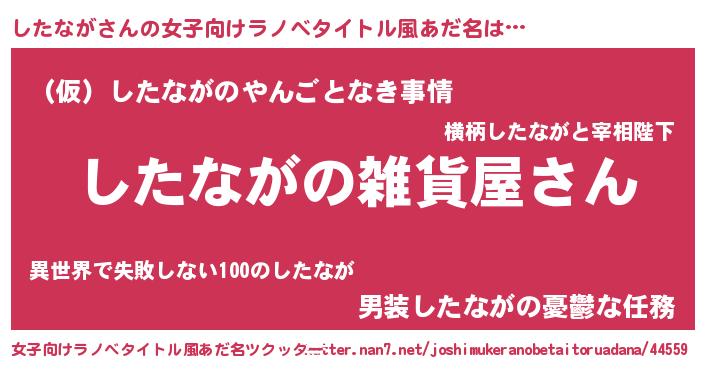 | 男性向けラノベタイトル風あだ名 | 『やはりしたながの青春ラブコメはまちがっている 』 |
