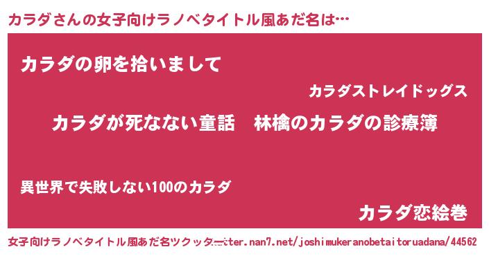 | 男性向けラノベタイトル風あだ名 | 『魔弾の王とカラダ』 |