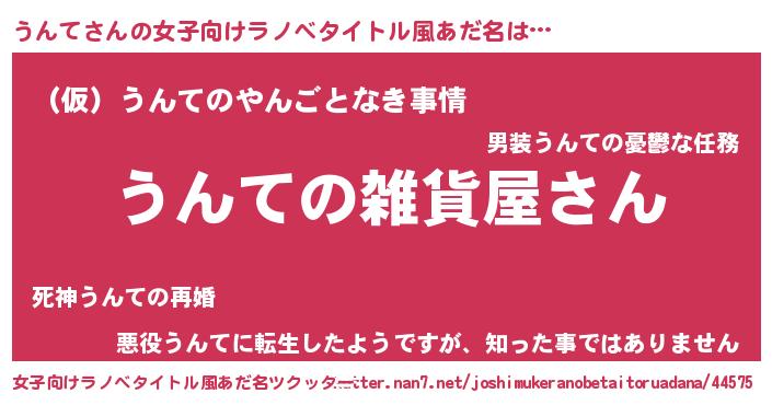 | 男性向けラノベタイトル風あだ名 | 『やはりうんての青春ラブコメはまちがっている 』 |