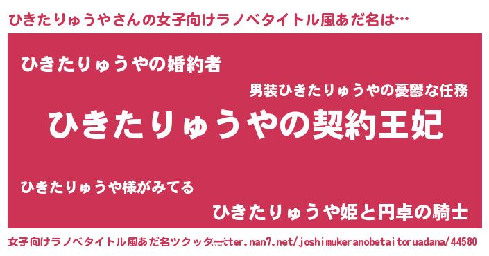 | 胡散臭い通販商品みたいなあだ名 | 『来世でも幸せになれる健康食品…その名も「ひきたりゅうや」』 |