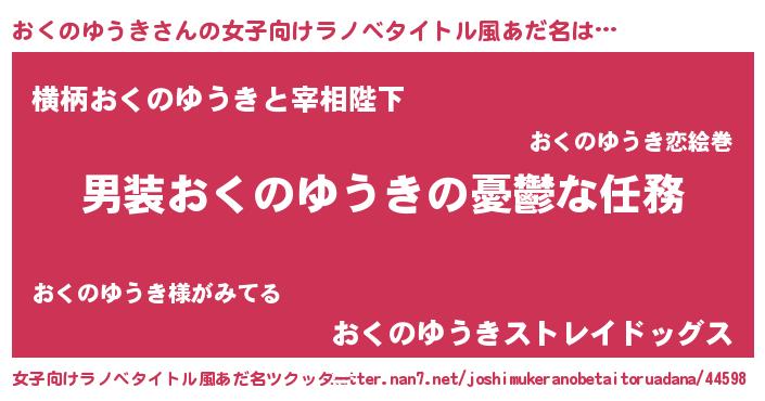 | 男性向けラノベタイトル風あだ名 | 『冴えないおくのゆうきの育てかた』 |