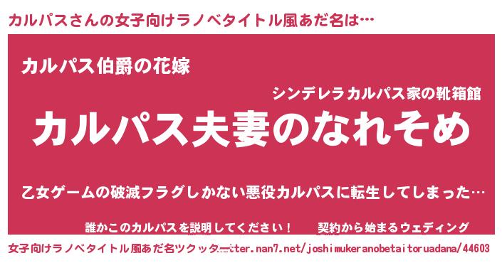 | 男性向けラノベタイトル風あだ名 | 『おまえをオタクにしてやるから、俺をカルパスにしてくれ! 』 |